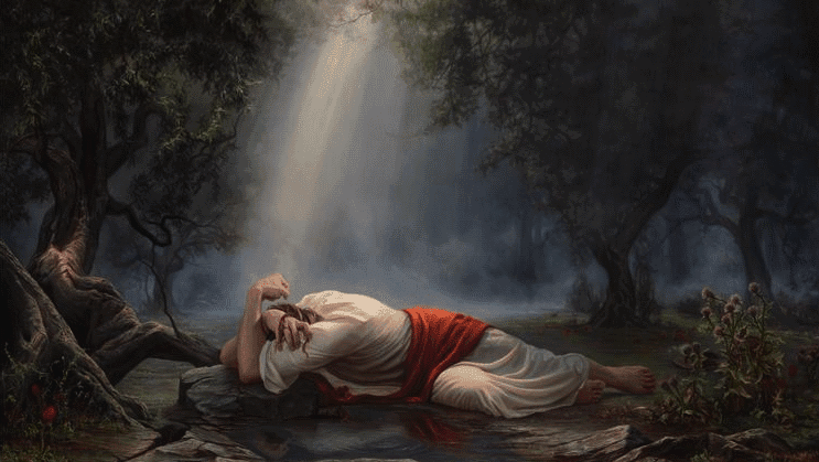 หลังจากยูดาสออกไปจากห้องแล้ว และเมื่อเสร็จจากการเลี้ยงอาหารค่ำ พระเยซูเจ้าทรงนำศิษย์สิบเอ็ดคนไปที่สวนเก็ทเซเมนี ทรงให้บรรดาศิษย์นั่งเฝ้าอยู่ แล้วปลีกพระองค์ไปสวดภาวนาอยู่ห่างๆ ทรงรู้สึกเศร้าพระทัยอย่างยิ่ง ทรงซบพระพักตร์ลงกับพื้นดิน อธิษฐานภาวนาว่า “พระบิดาเจ้าข้า ถ้าเป็นไปได้ขอให้ถ้วยนี้พ้นข้าพเจ้าไปเถิด ถ้าเป็นไปไม่ได้ก็ขออย่าให้เป็นไปตามใจข้าพเจ้า แต่ให้เป็นไปตามพระประสงค์ของพระองค์เถิด”